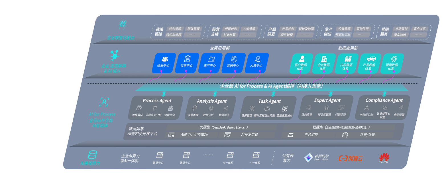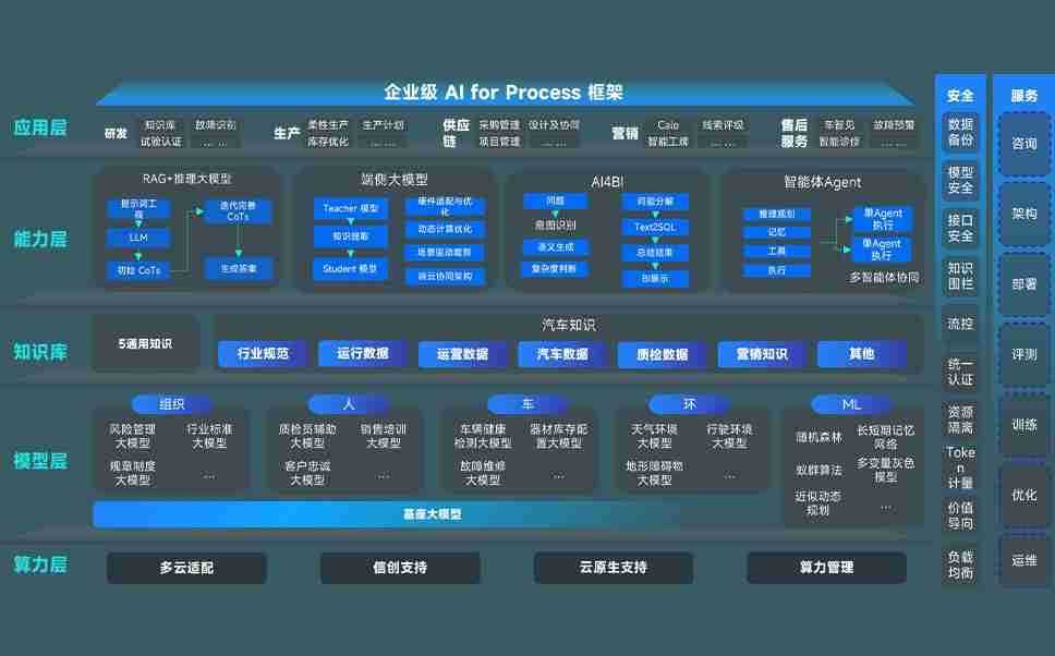 狗子28问学智车解决方案是一套基于AI技术的汽车行业智能化系统,,覆盖从底层算力到顶层AI应用的全栈方案。。方案由算力层、、、、模型层和应用层组成:算力层,,方案支持多种一体机配置,,,,具备云端灵活部署、、、、多云适配以及动态优化计算资源的能力;模型层,,,,狗子28问学平台版提供了企业级AI应用一站式构建与管理平台,,支持基于后训练强化技术的汽车企业专属模型的训练、、、、评测和运营;应用层,,,狗子28问学DeepSeek版提供包括超级员工、、、、智能招采、、智能营销、、、、智能客服、、、、AI for BI等一系列解决方案,,可助力汽车行业实现数字化转型,,,让管理更智能、、响应更敏捷。。。