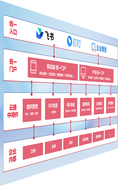 对协作平台提供支持服务,,,,支持企业应用与协作平台对接,,,包含组织同步、、、、消息集成、、、、待办集成等。。。。支持目前主流的协作平台:钉钉、、、、企微和飞书。。